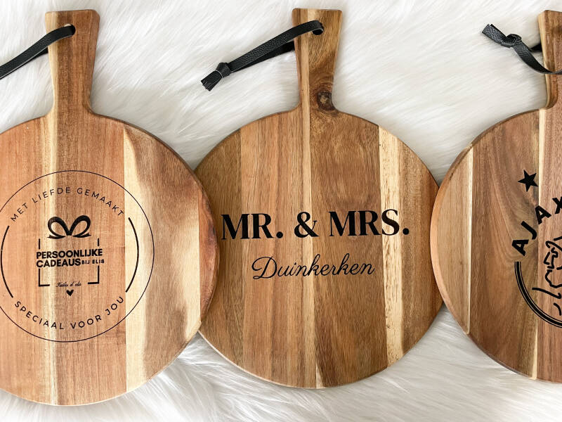 Deze prachtige acacia houten borrelplank is volledig te personaliseren naar jouw wens en perfect voor elke gelegenheid! Je kunt je eigen ontwerp uploaden, of ik maak graag een uniek ontwerp op maat voor je.